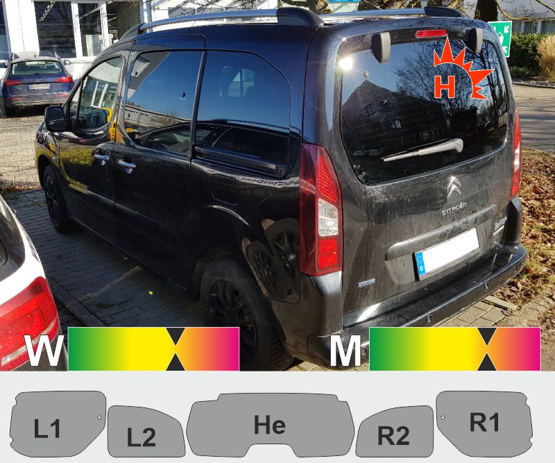 Für Ihren CITROEN Berlingo II mit klapparem Heckfenster Ausstellfenster an den Schiebetüren passende Tönungsfolie