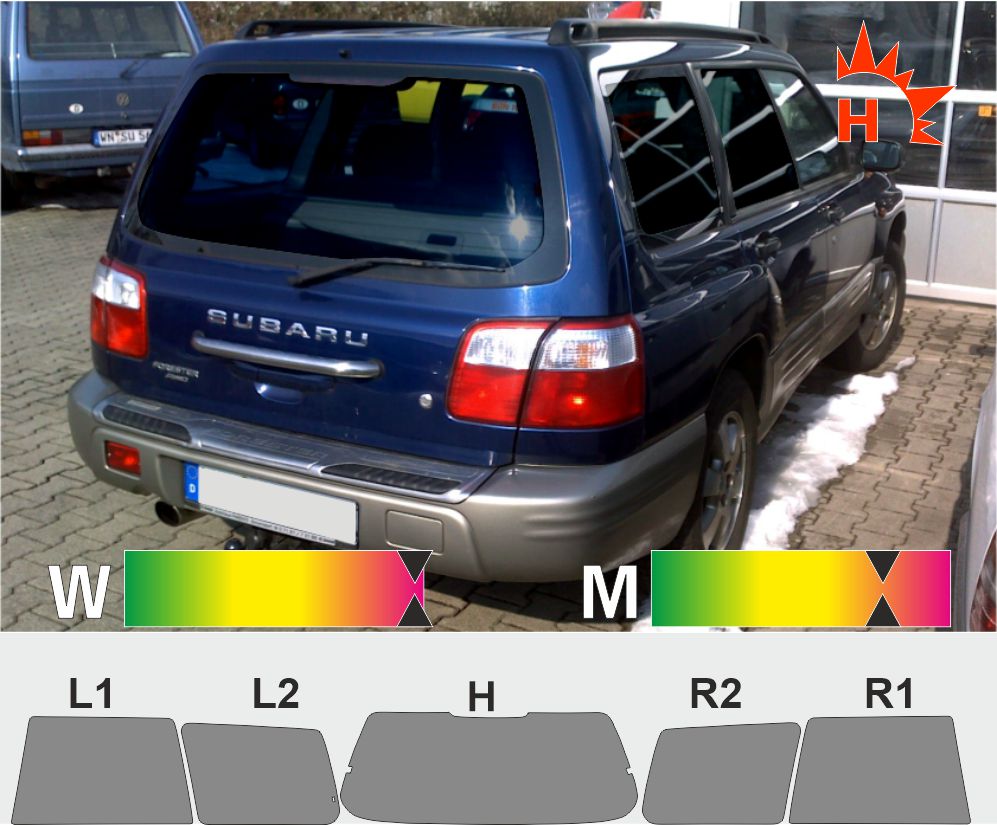Für Ihren SUBARU Forester SF 1997 bis 2002 passende Tönungsfolie