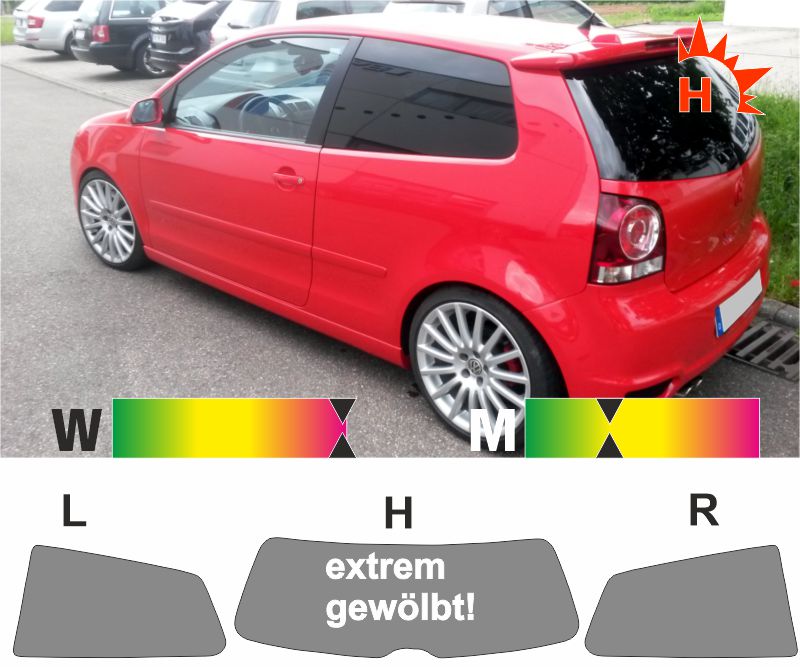Für Ihren VW Polo IV dreitürig 2001 bis 2009 passende Tönungsfolie aus unserer Giftküche